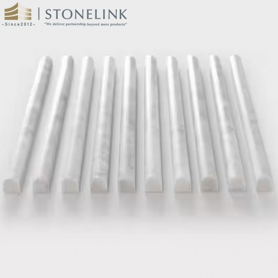 La moldura de lápiz acanalada para azulejos de mármol Blanco Carrara pulido es un pequeño detalle que impacta enormemente. Elaborada con mármol Blanco Carrara natural italiano, esta moldura de lápiz presenta un refinado perfil acanalado y un suave acabado apomazado que resalta el suave tono blanco y las delicadas vetas grises de la piedra. De líneas limpias, arquitectónicas y discretamente lujosas, está diseñada para realzar las instalaciones de azulejos sin competir por la atención.