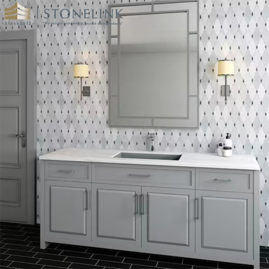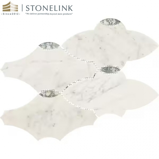 The Natural Carrara White court-style polished marble mosaic brings refined geometry and classic Italian marble into a contemporary mosaic format. Crafted from authentic Carrara White marble, this design features softly contoured court-style shapes arranged in a balanced, flowing pattern that adds visual rhythm without overwhelming the space. The polished surface enhances the stone’s natural white base and subtle gray veining, delivering a clean, luminous finish suitable for both modern and timeless interiors. This Carrara White court-style polished marble mosaic pairs effortlessly with natural wood, metal, or minimalist surfaces, offering designers flexibility across styles, from classic European elegance to contemporary luxury. Subtle yet distinctive, it is an ideal choice for projects that require material authenticity, refined design, and long-term aesthetic value.
