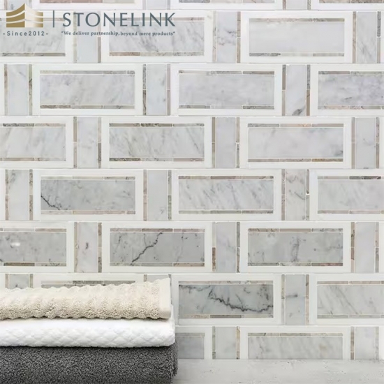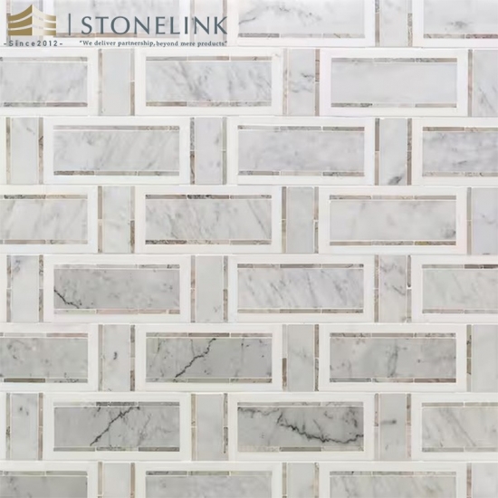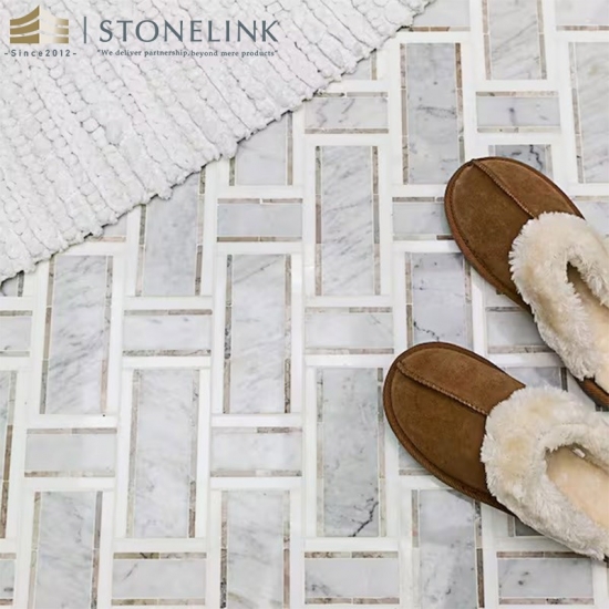 Cada lámina del mosaico de mármol entrelazado Blanco Carrara y Gris Thasos mide 32,7 cm x 32,4 cm (12-7/8" x 12-3/4"), cubriendo 0,114 pies cuadrados (0,114 pies cuadrados), y se produce con un sistema de encaje que favorece la continuidad visual con mínimas juntas visibles. Su grosor controlado y el soporte de malla garantizan una manipulación precisa para los instaladores, tanto en paredes como en suelos. Este mosaico es ideal para paredes de baños, salpicaderos de cocinas, revestimientos de duchas, paneles decorativos y suelos residenciales de bajo tránsito. Su superficie pulida ofrece un acabado limpio y mate que armoniza con las especificaciones de interiores contemporáneos. Es una opción eficaz para proyectos que buscan una estética refinada inspirada en el uso histórico del mármol natural.