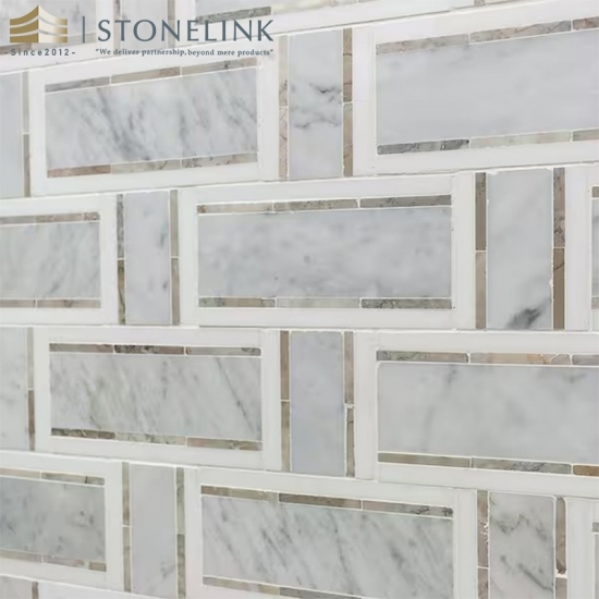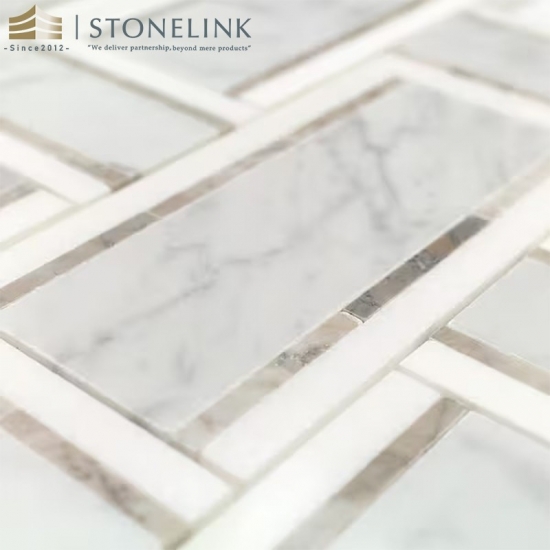 Mosaico de mármol entrelazado con mármol blanco de Carrara y gris de Thasos |